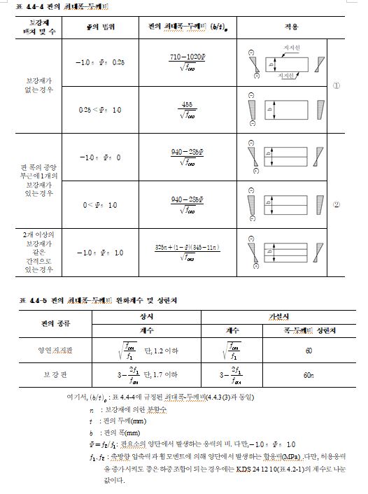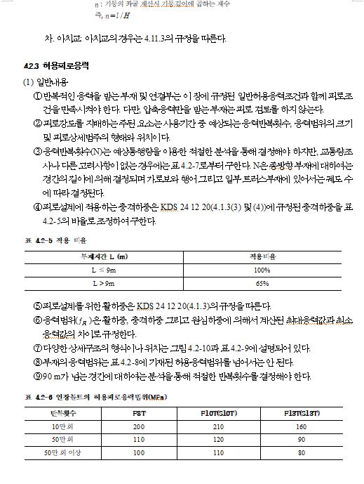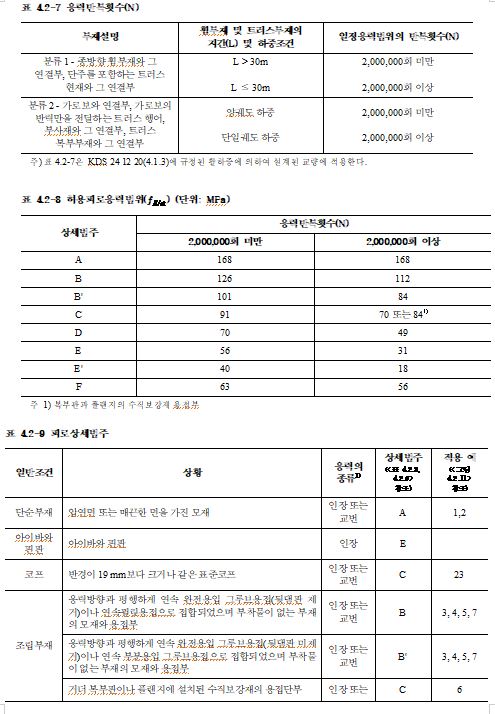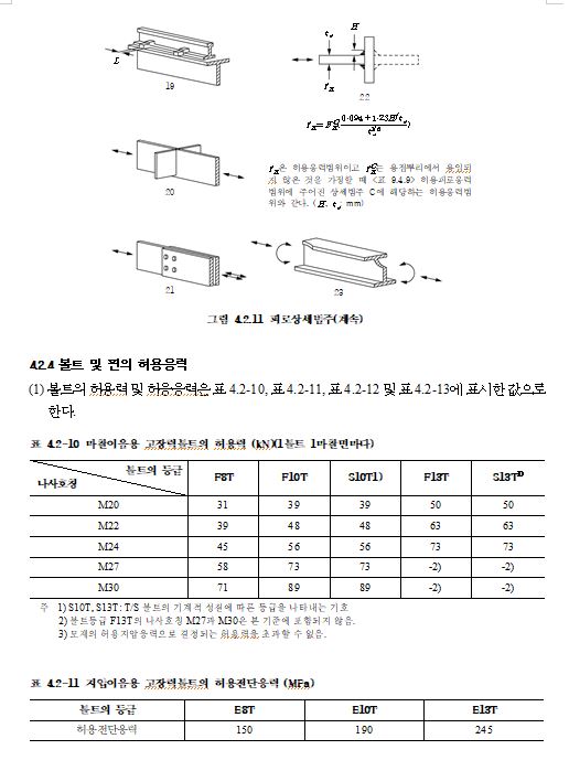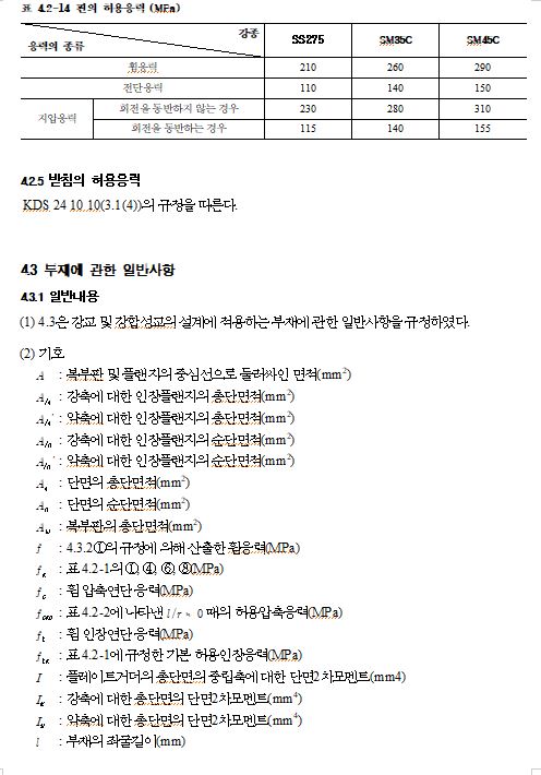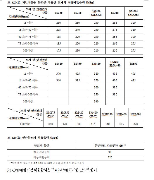 4.2.2 구조용 강재 및 용접부의 허용응력
