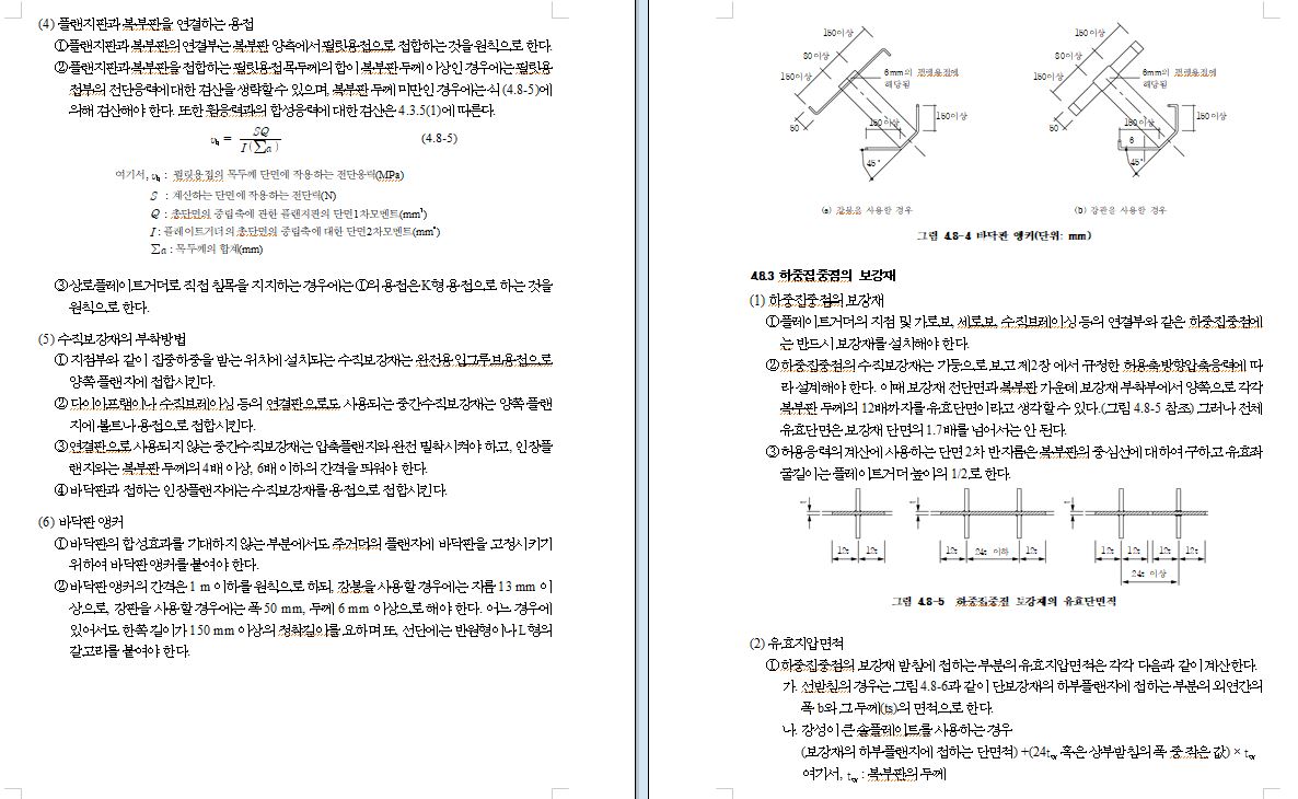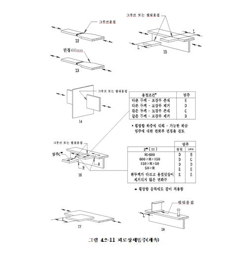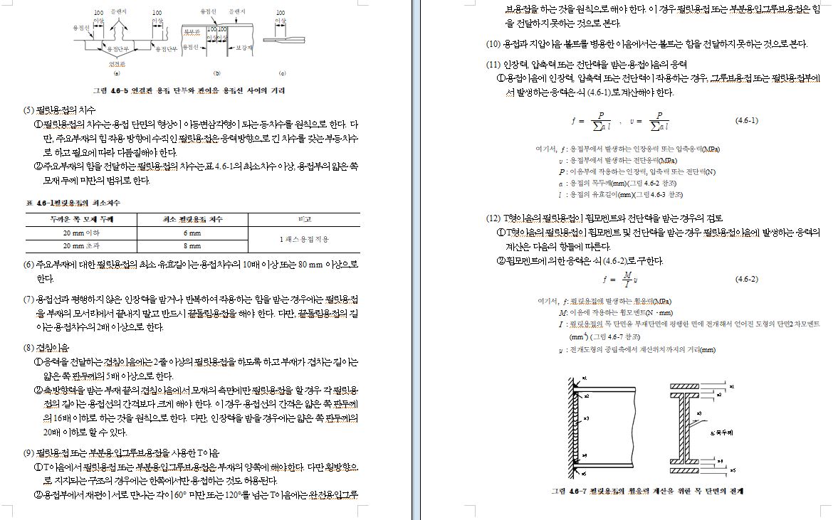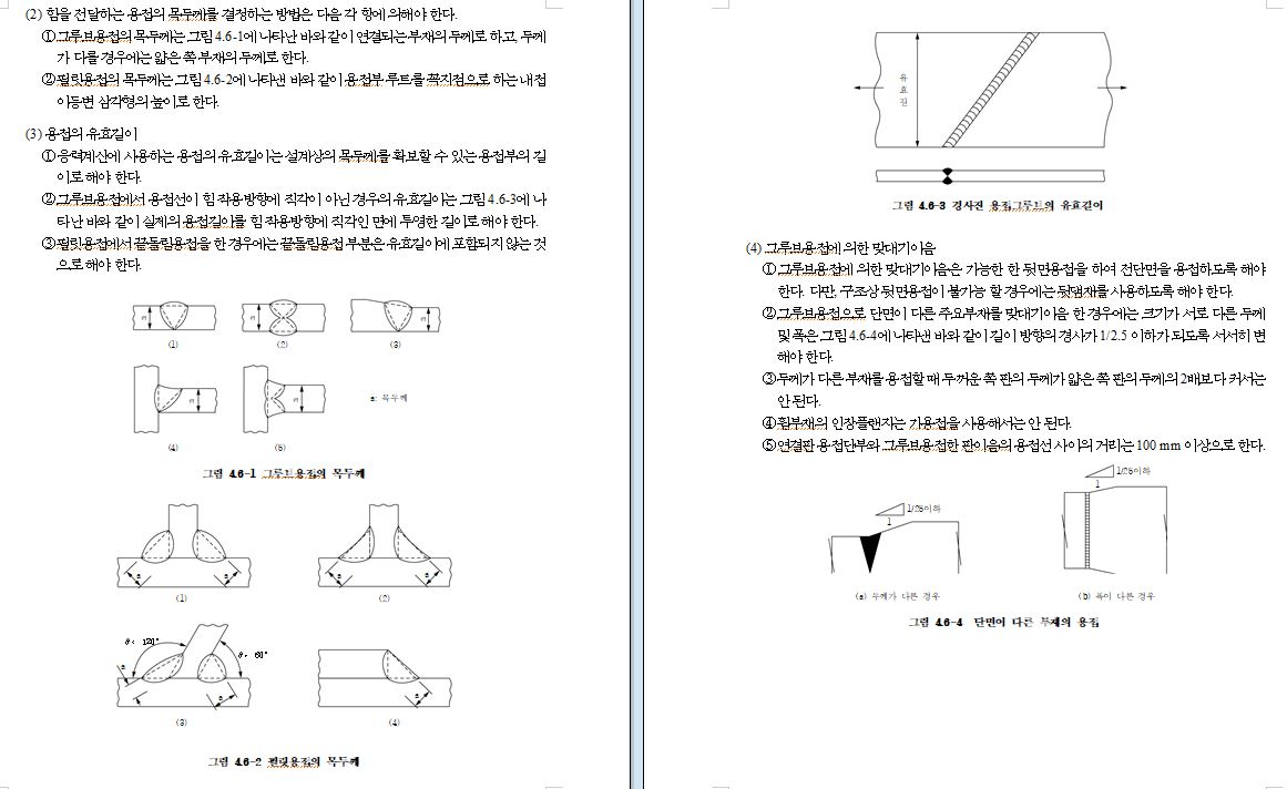 (2) 부재 및 그 이음은 조립작업, 용접, 검사 등이 용이하도록 하고 가능한 용접의 집중이나 응력의 집중이 일어나지 않도록 설계해야 한다. 또, 용접에 의한 수축응력 및 변형을 고려해야 한다.