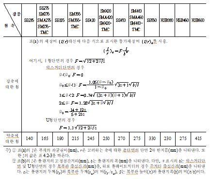 축방향응력 | 16이하 | 140 | 165 | 165 | 190 | 215 | 245 | 250 | 270 | 275 | 330 | ① | |