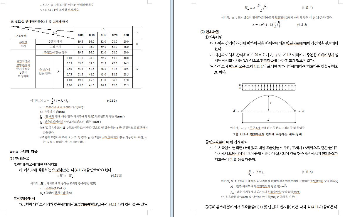 표 4.1-1 부재의 세장비