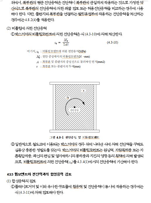 | 전단응력 | 총단면적 기준 | 16이하 | 80 | 95 | 95 | 110 | 125 | 140 | 145 | 155 | 160 | 190 | ② | ||
